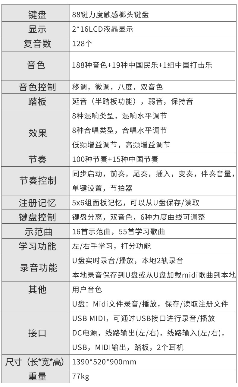 188種音色+19種中國民樂+1組中國打擊樂