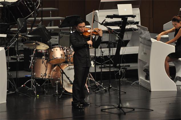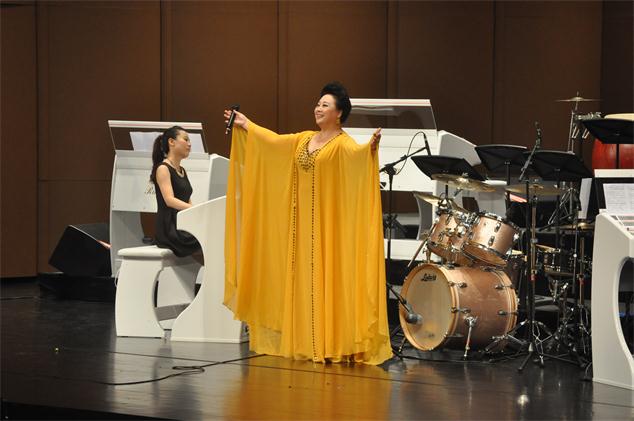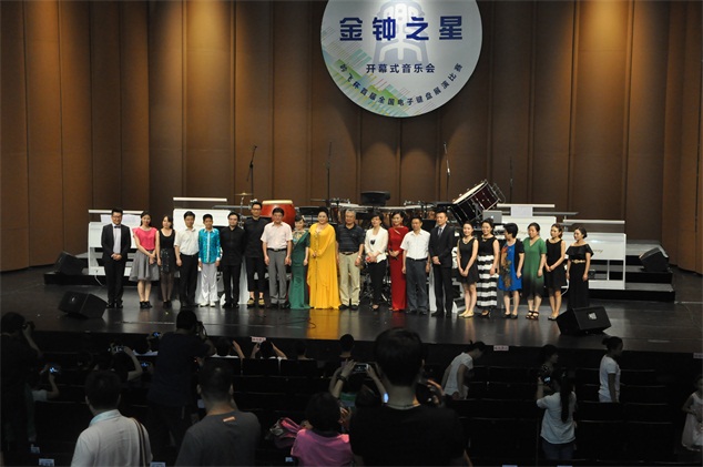 開(kāi)幕式音樂(lè)會(huì)首先由著名管風(fēng)琴與電子管風(fēng)琴演奏家、上海音樂(lè)學(xué)院現(xiàn)代器樂(lè)與打擊樂(lè)系主任-朱磊教授填詞、改編,吟飛藝術(shù)中心、常州華聲合唱團(tuán)以及上海音樂(lè)學(xué)院打擊樂(lè)團(tuán)共同合作演繹的電子交響與合唱作品---《龍吟飛揚(yáng)》氣勢(shì)恢宏、大氣磅礴的拉開(kāi)了序幕。接下來(lái),著名青年古箏演奏家宋心馨與吟飛藝術(shù)中心的兩位青年電子管風(fēng)琴演奏家劉丹丹、齊靚攜手合作,完美上演了動(dòng)人至極的古箏名曲《蒼歌引》;著名青年歌唱家、總政歌劇團(tuán)國(guó)家一級(jí)演員湯子星與吟飛團(tuán)隊(duì)的青年電子管風(fēng)琴演奏家曹潔瓊、上海音樂(lè)學(xué)院碩士生在讀的侯雪凝共同帶來(lái)了一首自作曲《共圓中國(guó)夢(mèng)》;年僅14歲的未來(lái)之星-田炎智為大家?guī)?lái)了頗具技巧難度的電子管風(fēng)琴獨(dú)奏《d小調(diào)托卡塔與賦格》;著名女高音歌唱家、中華全國(guó)總工會(huì)文工團(tuán)國(guó)家一級(jí)演員鄭詠老師,為現(xiàn)場(chǎng)聽(tīng)眾高歌了一曲家喻戶曉的《我愛(ài)你,中國(guó)》;著名青年演奏家、中央音樂(lè)學(xué)院附中室內(nèi)樂(lè)及小提琴專業(yè)教師岳麟與吟飛藝術(shù)中心的青年電子管風(fēng)琴演奏家劉丹丹合作的一曲小提琴名作《流浪者之歌》令人贊嘆不已;著名抒情花腔女高音歌唱家吳碧霞與吟飛團(tuán)隊(duì)的青年電子管風(fēng)琴演奏家曹潔瓊共同演繹的一首《帕米爾,我的家鄉(xiāng)多么美》,把整個(gè)音樂(lè)會(huì)推向了最高潮。而本場(chǎng)音樂(lè)會(huì)的尾聲則上演了兩曲分別由青年電子管風(fēng)琴演奏家巫丹霞、趙偉強(qiáng)作曲、編曲,并親自與上海音樂(lè)學(xué)院爵士樂(lè)團(tuán)共同演繹的原創(chuàng)佳作---《三言兩語(yǔ)》和《音爆》,為金鐘之星開(kāi)幕式音樂(lè)會(huì)畫上了圓滿的驚嘆號(hào)。音樂(lè)會(huì)上,每一位歌唱家、演奏家都極具親和力,他們的同臺(tái)獻(xiàn)藝將整場(chǎng)音樂(lè)會(huì)推向一個(gè)又一個(gè)的高潮!