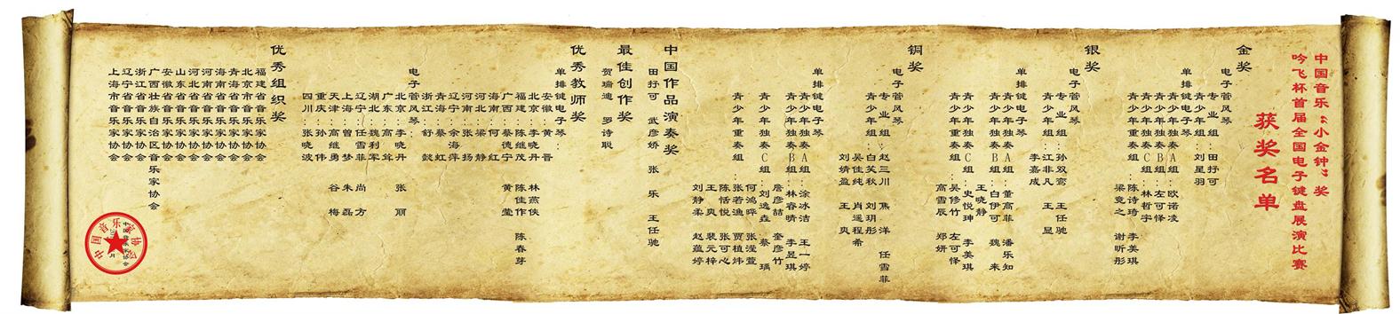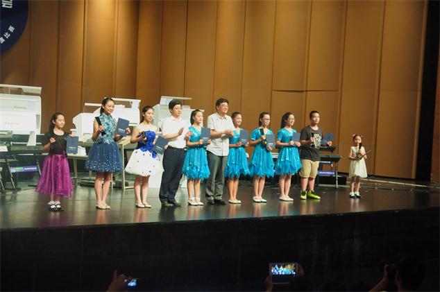 在8月7日晚中國(guó)音樂(lè)“小金鐘”獎(jiǎng)“吟飛杯”首屆全國(guó)電子鍵盤展演比賽頒獎(jiǎng)音樂(lè)會(huì)上,中國(guó)音樂(lè)家協(xié)會(huì)和常州市各級(jí)領(lǐng)導(dǎo)也應(yīng)邀參加了頒獎(jiǎng)音樂(lè)會(huì),并為獲得兩個(gè)大類、共6個(gè)組別的金、銀、銅獎(jiǎng),和中國(guó)作品演奏獎(jiǎng)、最佳創(chuàng)作獎(jiǎng)、優(yōu)秀教師獎(jiǎng)以及優(yōu)秀組織獎(jiǎng)選手、教師頒獎(jiǎng)。隨后,各級(jí)別獲得金、銀、銅獎(jiǎng)的選手分別為大家獻(xiàn)上了自己的獲獎(jiǎng)曲目,再一次展現(xiàn)了各自在電子鍵盤和音樂(lè)上的演繹水平及休養(yǎng)。最后,由吟飛藝術(shù)中心和比賽獲獎(jiǎng)選手共同演繹的一首由著名管風(fēng)琴與電子管風(fēng)琴演奏家、上海音樂(lè)學(xué)院現(xiàn)代器樂(lè)與打擊樂(lè)系主任---朱磊教授作曲、編曲,氣勢(shì)恢宏、大氣磅礴的《曙光》,將整場(chǎng)頒獎(jiǎng)音樂(lè)會(huì)推向了高潮,并為中國(guó)音樂(lè)“小金鐘”獎(jiǎng)“吟飛杯”首屆全國(guó)電子鍵盤展演比賽畫上了圓滿的句號(hào)。
