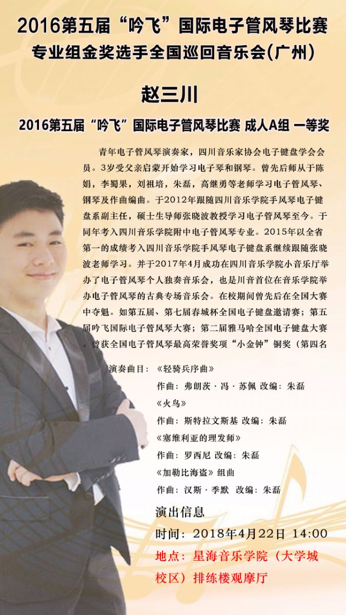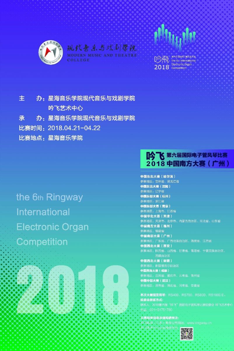 4月21日—4月22日第六屆“吟飛”國際電子管風(fēng)琴比賽中國南方大賽(廣州)即將開賽,本次比賽將在星海音樂學(xué)院大學(xué)城校區(qū)舉辦,請(qǐng)各位參加比賽的選手不要跑錯(cuò)場地了~