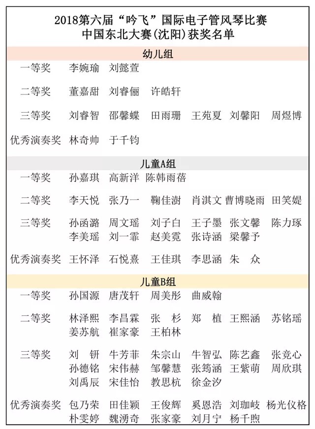 【獲獎名單·沈陽】2018第六屆“吟飛”國際電子管風琴比賽